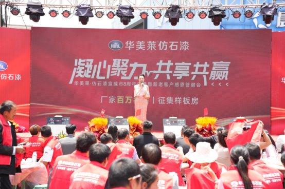 5月2日,“凝心聚力·共享共贏 ”華美萊仿石漆宣威市8周年慶典暨新老客戶感恩答謝會隆重舉行。來自云南區域的經銷商齊聚宣威,攜手共進,賦能共創,共同描繪華美萊仿石漆的新藍圖。